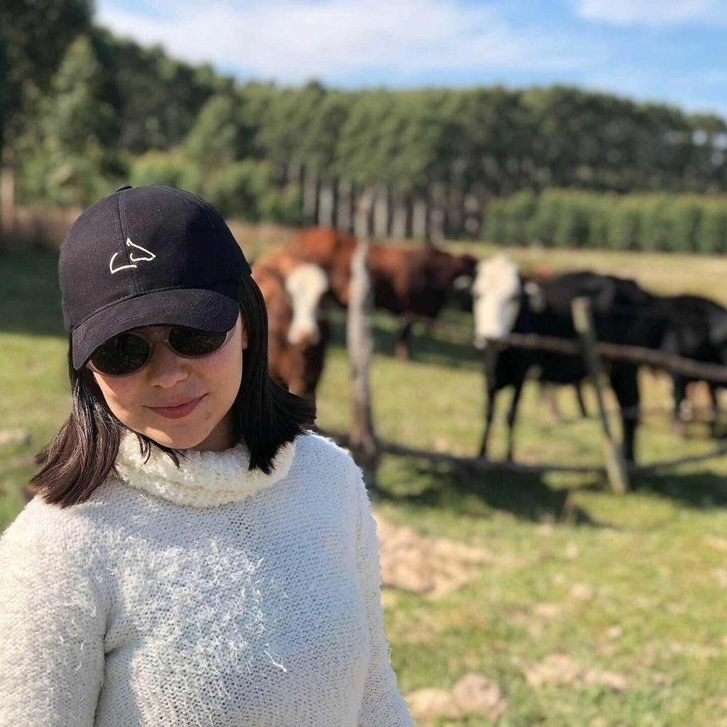 Gorra negra de gabardina con hebilla metalica para regular el tamaño en la parte de atras. La gorra es talle Unico y Unisex.